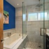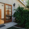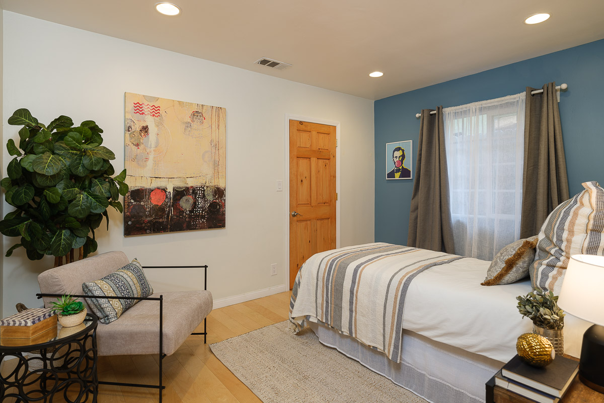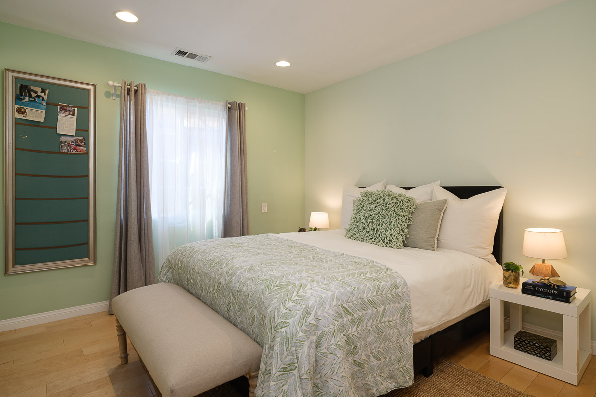 The private wing of the house has three bedrooms and two bathrooms, including a luxurious master suite with a spa-like bath, large walk-in closets and double paned, glass doors that open out to the shade dappled rear patio. The additional, spacious bedrooms feature custom paint colors completing the welcoming interior of this picture-perfect property that is move-in ready.